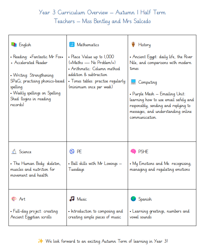 Year 3 Curriculum Map Autumn 1 - 2025